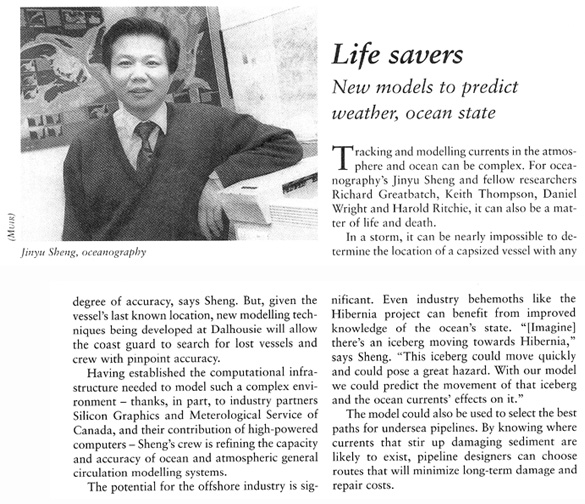 Life savers: New models to predict weather, ocean state. Dalhousie Alumni Magazine, 17(3), pp. 17-18, Winter 2001.