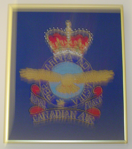 This one's for my Dad. I couldn't find a pattern at the time, so I borrowed a pattern that had been used for a rug, and picked the colours from an actual air force crest. It turned out great, and Dad loved it.