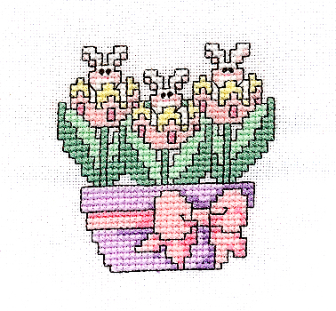 Flower Basket - adapted from Janlynn "Easter Treasures" kit. Completed March 8, 2002. Back to [my xstitch page.]