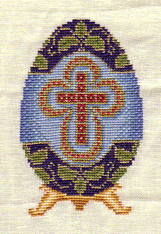 Blue Easter Egg with Ruby Cross - Designed by Stoyanka M. Ivanova.