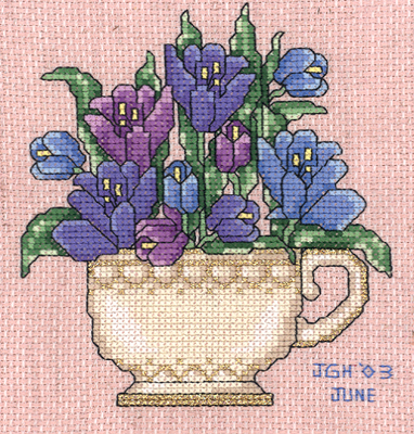 Stitched on 14ct sorta-tweedy-pinkish aida.